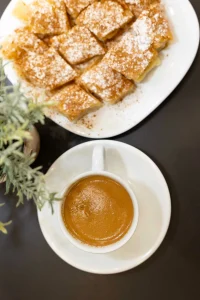 Και για να ολοκληρωθεί η εμπειρία; Ο φρεσκοκομμένος καφές 100% Arabica απογειώνει τη γεύση της μπουγάτσας και κάνει κάθε επίσκεψη μοναδική.