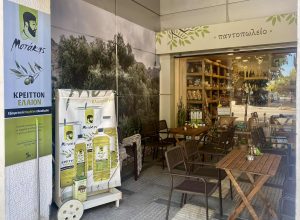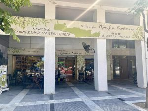 Ένα μαγαζί φτιαγμένο με αγάπη και μεράκι, όπου οι επισκέπτες δεν έρχονται μόνο για να ψωνίσουν, αλλά και για να απολαύσουν παραδοσιακές κρητικές γεύσεις σε έναν φιλόξενο χώρο με καθίσματα.